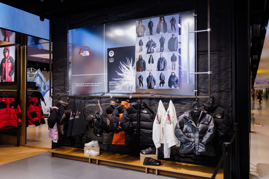 The store offers a wide range of products, meeting both the challenges of outdoor pursuits and the lifestyle demands of city living. From the peaks to the streets, The North Face presents a collection that includes the Performance Collection for extreme weather and outdoor activities, as well as the Urban Exploration Collection, tailored to stylish urban living and reflecting the personality of a new generation seeking bold self-expression.