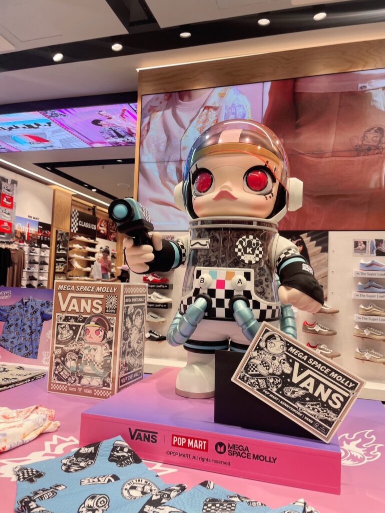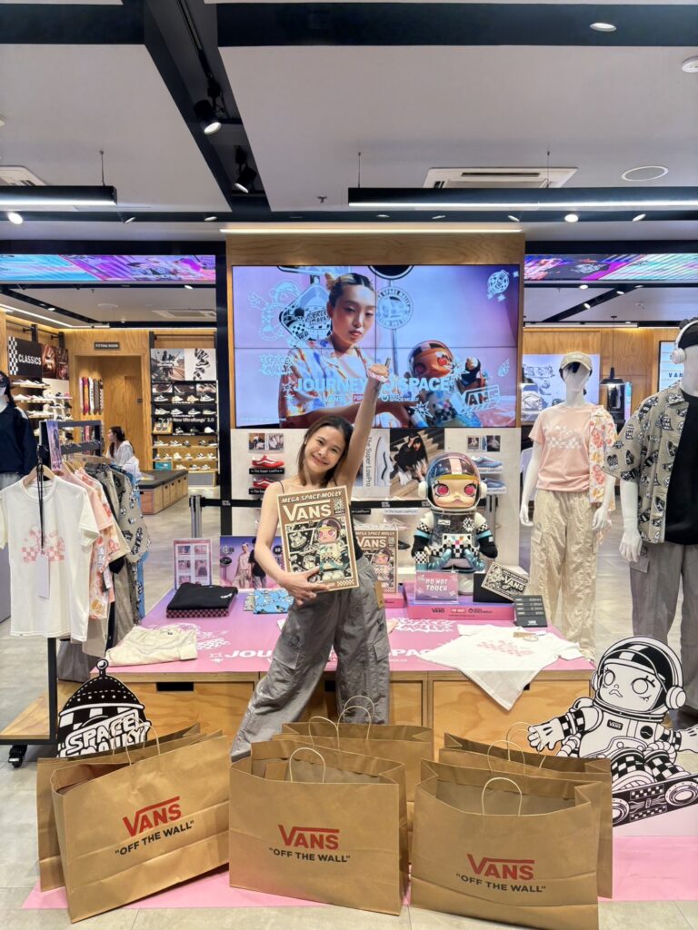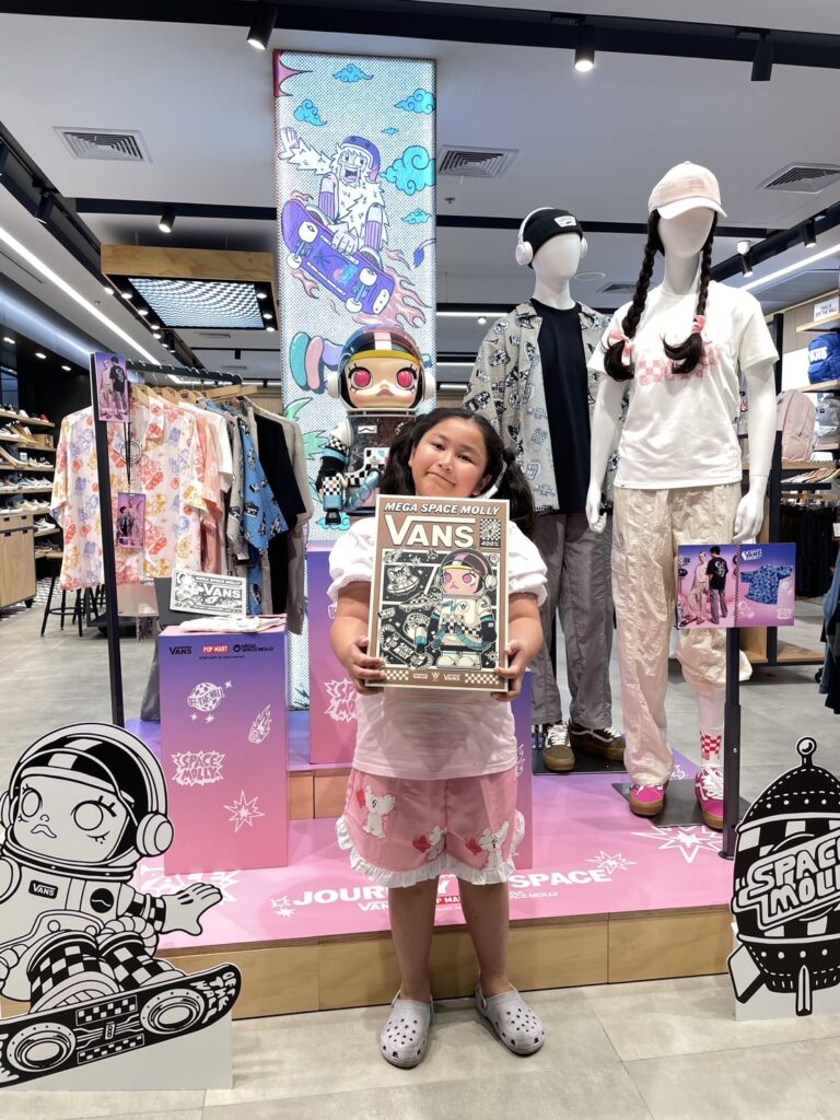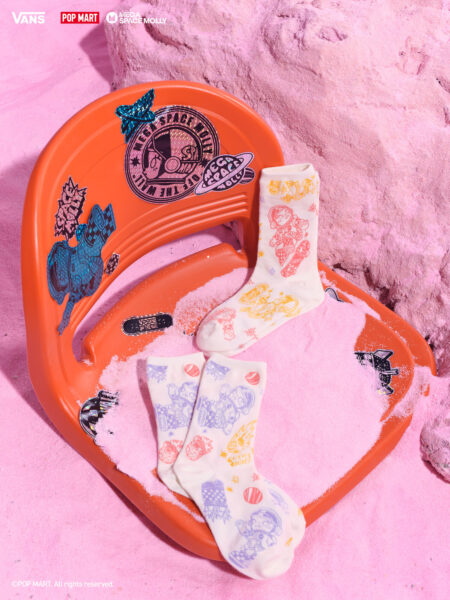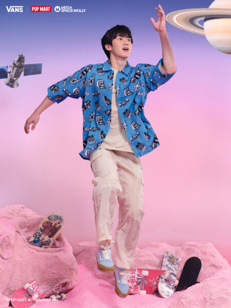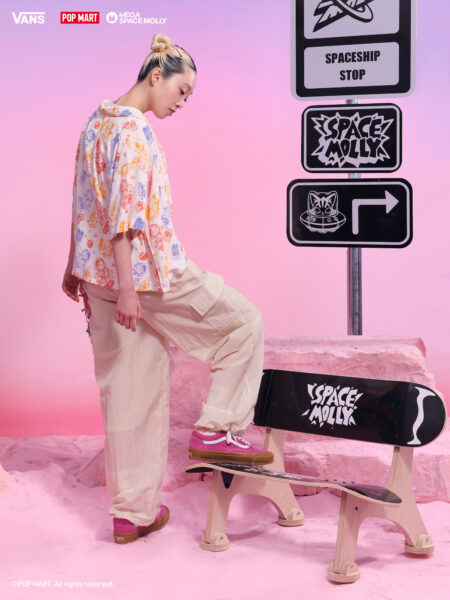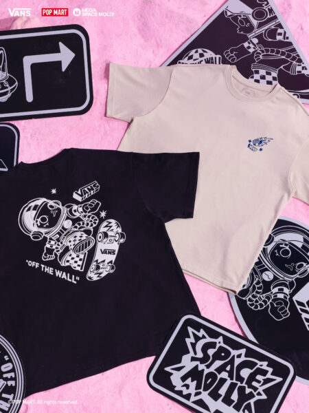 Vans teams up with POP MART and Kenny Wong to unveil the cuteness of the SPACE MOLLY character with a skateboarding action in SPACE MOLLY style. VANS X SPACE MOLLY CAPSULE collection releasing with a head-to-toe collection including shirts, graphic tees, cargo pants, and socks with exclusive deals only for Vans family when you buy any items from The VANS X SPACE MOLLY CAPSULE with a value of 3,000 baht or more, then you get a right to a lucky draw to win a VANS X SPACE MOLLY figure 400% (retail price 6,790 baht) with a limited amount of only 35 figures, as well as other gift such as a Vans Bath Towel, Vans Carpet, Vans Giant Tote Bag, Vans Foldable Stool and Vans Metallic Stickers.